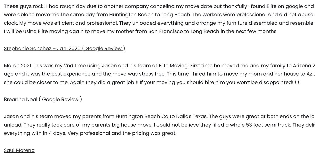 At Socal Elite Moving & Storage we are dedicated to delivering our 5 star service to each and every single customer. No matter how small or big your local or long-distance move is you will experience our efficient and professional service. We will always go the extra mile to ensure all our customers have a stress free and memorable moving experience that match their budget and schedule.